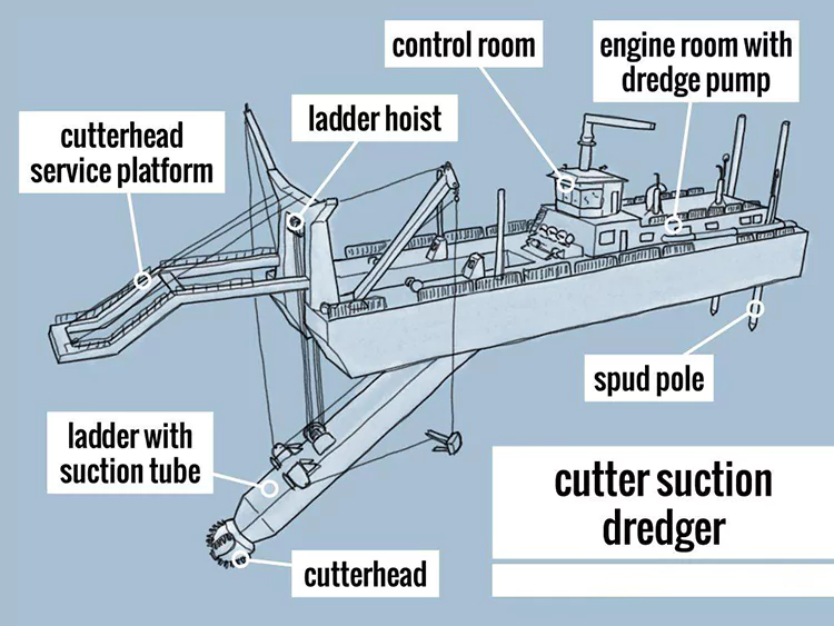 Kasama sa mga pangunahing istruktura nito ang isang cutter system, isang suction at discharge system, isang positioning at traversing system, at isang power system, na nagpapagana ng pinagsama-samang "excavation-conveying-unloading" na mga operasyon. Ito ay malawakang ginagamit sa river dredging at reclamation projects..
