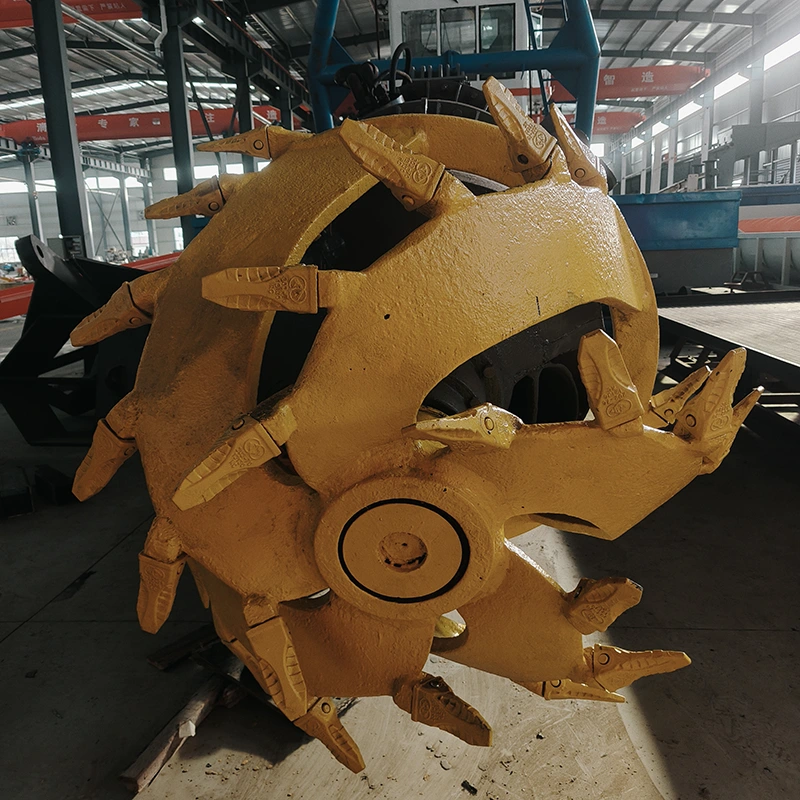 Nilagyan ng hydraulically driven cutter head sa harap, ito ay umiikot para putulin at buwagin ang mga siksik na gold-bearing sand layer, na tumutugon sa mababang kahusayan ng mga tradisyonal na gold dredger sa matitigas na kondisyon ng ilog. Halimbawa, sa mga ilog na may tumigas na mga layer ng buhangin, ang ulo ng pamutol ay maaaring durugin ang mga materyales ng mineral sa isang pumpable na estado.